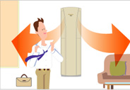 R410A冷媒具有制熱性能優(yōu)越,無毒且不破壞臭氧層等特點。大金新冷媒柜機能迅速制熱,最大制熱能力10.5W,可對應(yīng)40m 大面積房間的制熱需求。