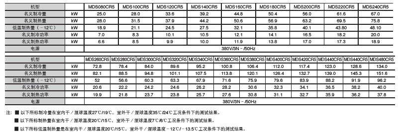 ■機(jī)組運(yùn)行范圍更加寬廣,制冷運(yùn)行范圍:-5℃~48℃,制熱運(yùn)行范圍:-25℃~21℃,制熱運(yùn)行環(huán)境
