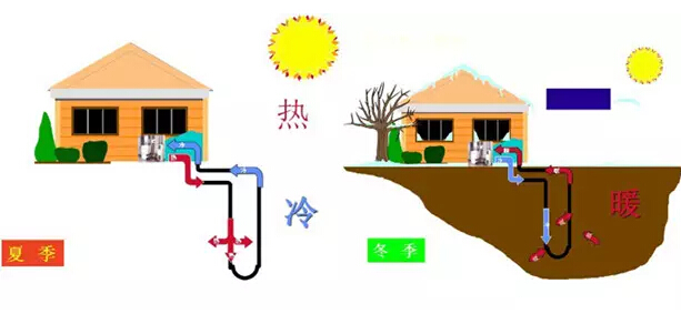作為地源熱泵系統(tǒng)的熱量來源(冬季)和熱量的減排低放源(夏季)的土壤深度在數(shù)米以下,全年溫度基本恒定,冬季遠高于室外空氣溫度,夏季又低于空氣溫度,因此地源熱泵的熱量轉(zhuǎn)移的條件遠憂于空氣源熱泵,只需要較少的外界能源即可實現(xiàn)熱能的順利轉(zhuǎn)移。
