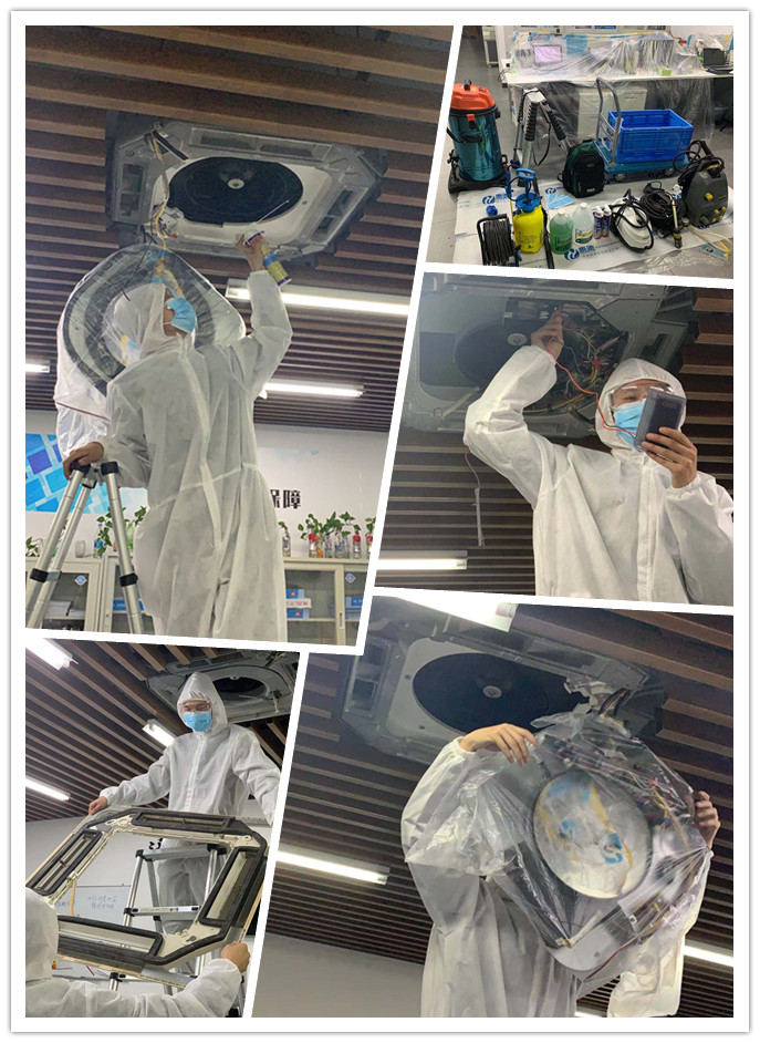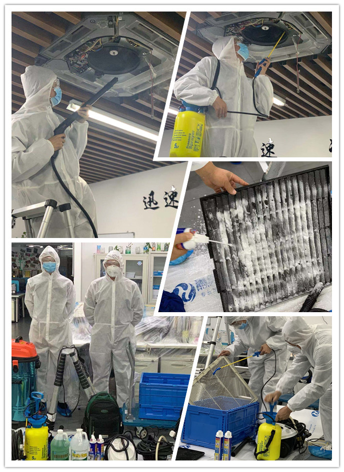 新型冠狀病毒的主要傳播途徑是通過呼吸道飛沫傳播,當帶病毒的飛沫附著在通風系統內的顆粒物中傳播開來,污染室內空氣,就會大大提高室內人員感染病毒的風險,導致肺炎疫情加劇。因此對中央空調進行有效的清洗、消毒迫在眉睫。