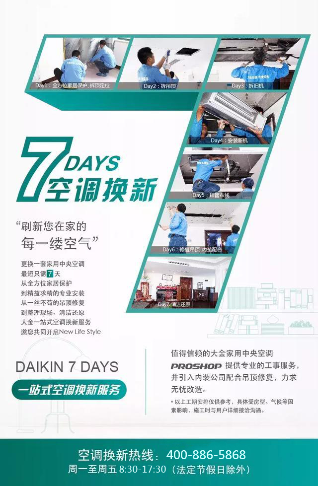 家用中央空調(diào)想改造?今后您不必再為此擔(dān)心,放心交給大金PROSHOP家用中央空調(diào)專(zhuān)業(yè)店,7日無(wú)憂(yōu)改造,從保護(hù)到拆機(jī),從安裝到修復(fù),專(zhuān)業(yè)的團(tuán)隊(duì)帶您開(kāi)啟專(zhuān)屬您和家人的NEW LIFE STYLE。